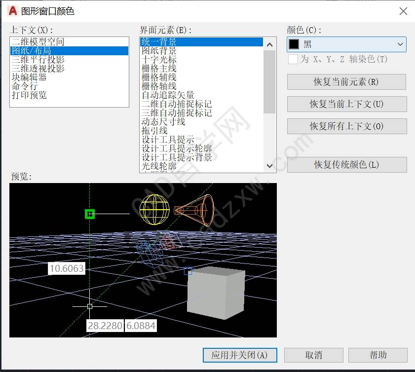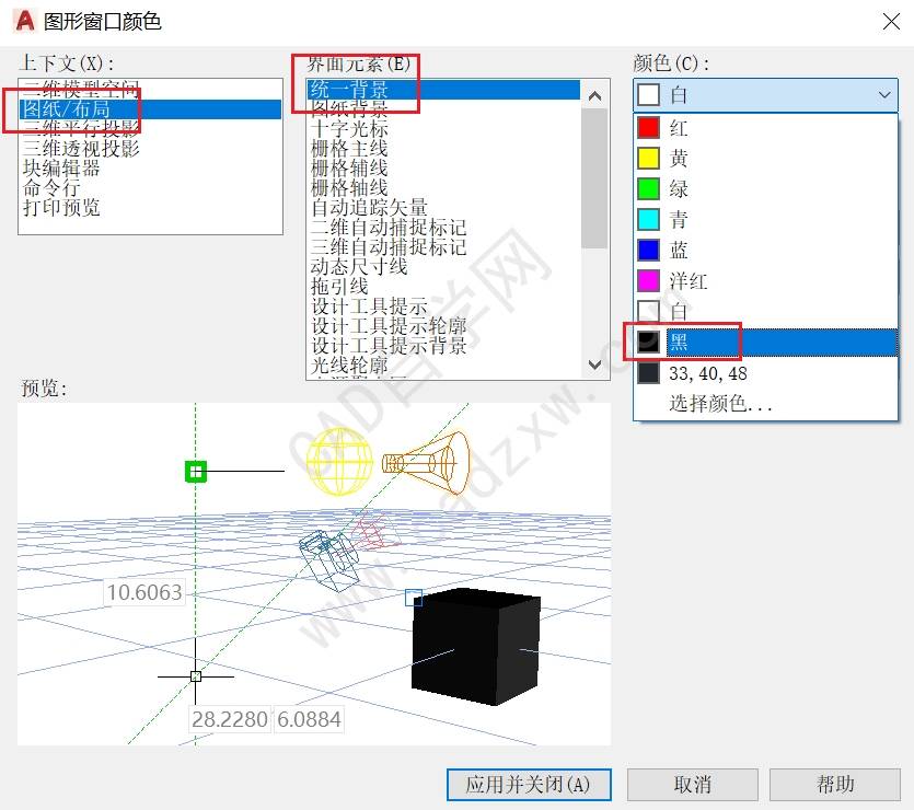 点击布局/图纸,统一背景、将颜色改成黑色;