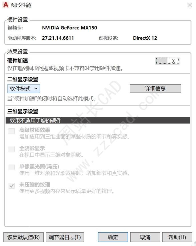 经常有一些用户会问一些CAD卡顿,CAD图纸出现很多乱线,十字光标闪烁等问题,经周站长多年经验,大多数情况是CAD硬件加速问题,可能软件和电脑显卡及显卡驱动有关吧,如果你遇到此类问题可以关闭硬件加速试试。