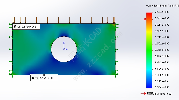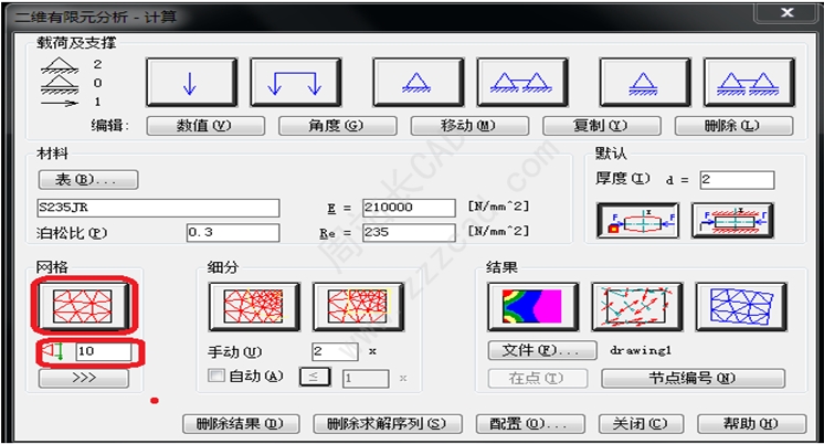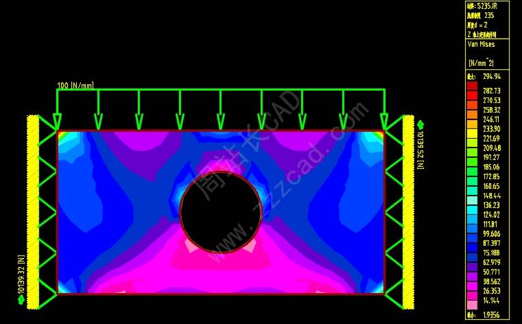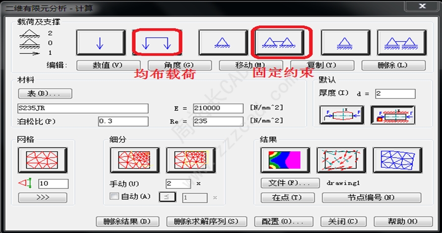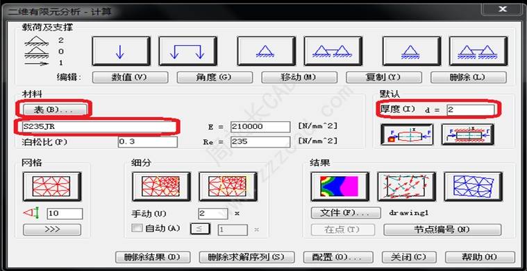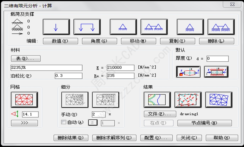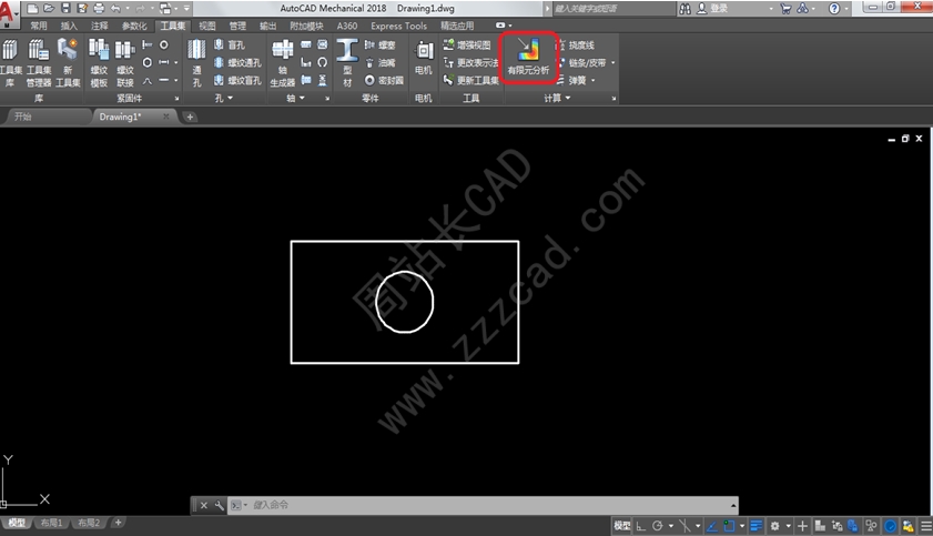 对于二维有限元分析,可采用AutoCAD Mechanical 进行计算,以一块二维孔板计算为例。