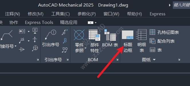 正常情况下我没用AutoCAD Mechanical插入图框图样代号在右下角,如图: