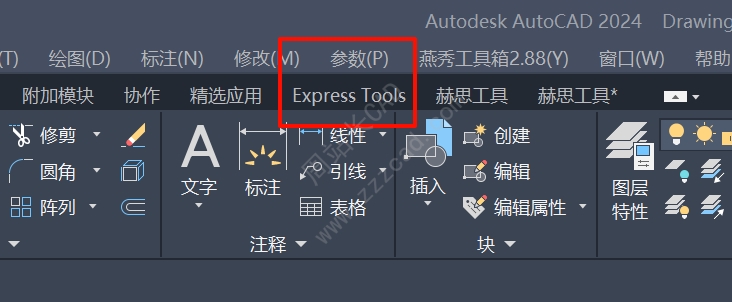 首先我们要确定我们安装CAD的时候安装了express tools。