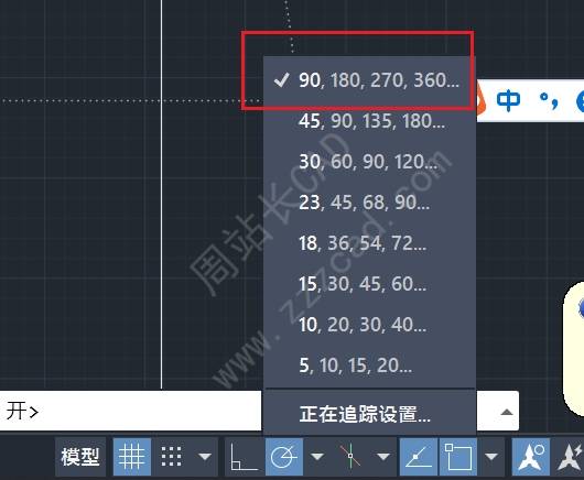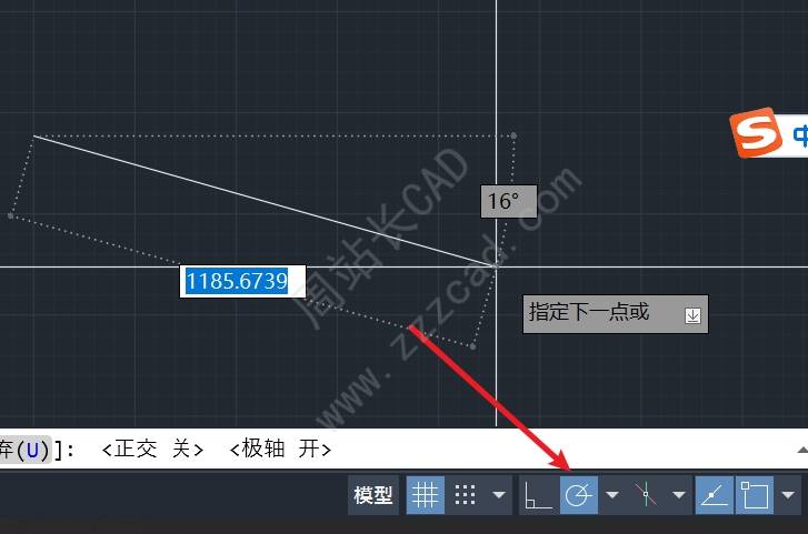 当提示输入第二点时,我们按F10或者将状态栏极轴开启即可;