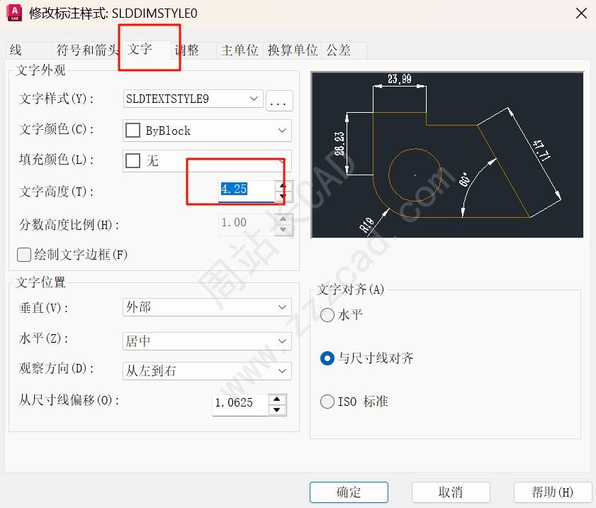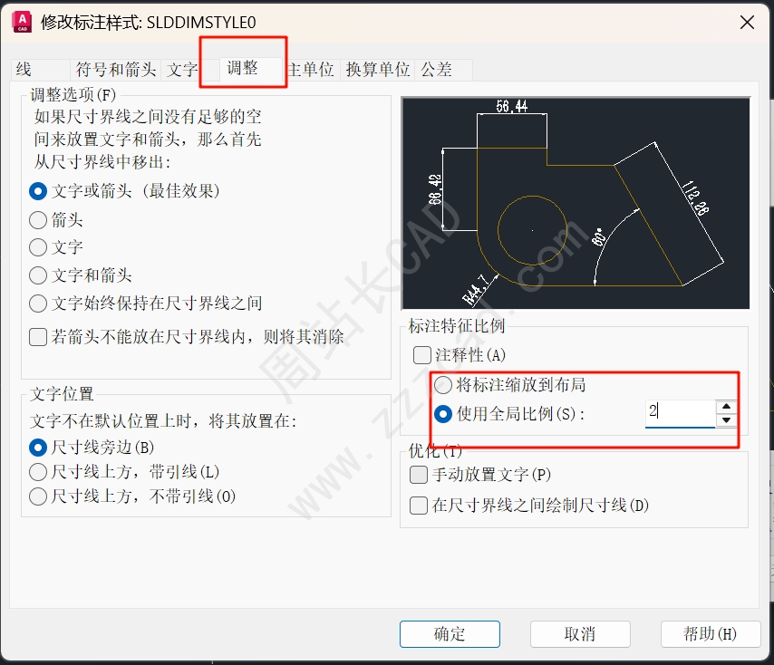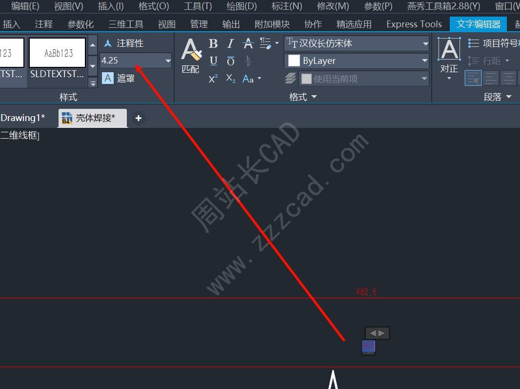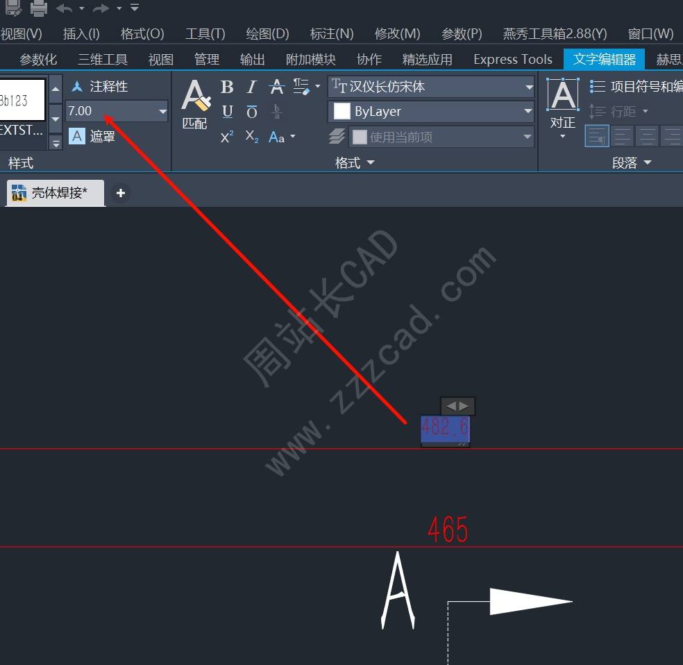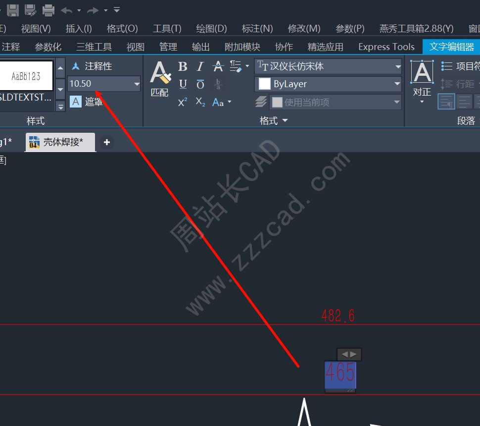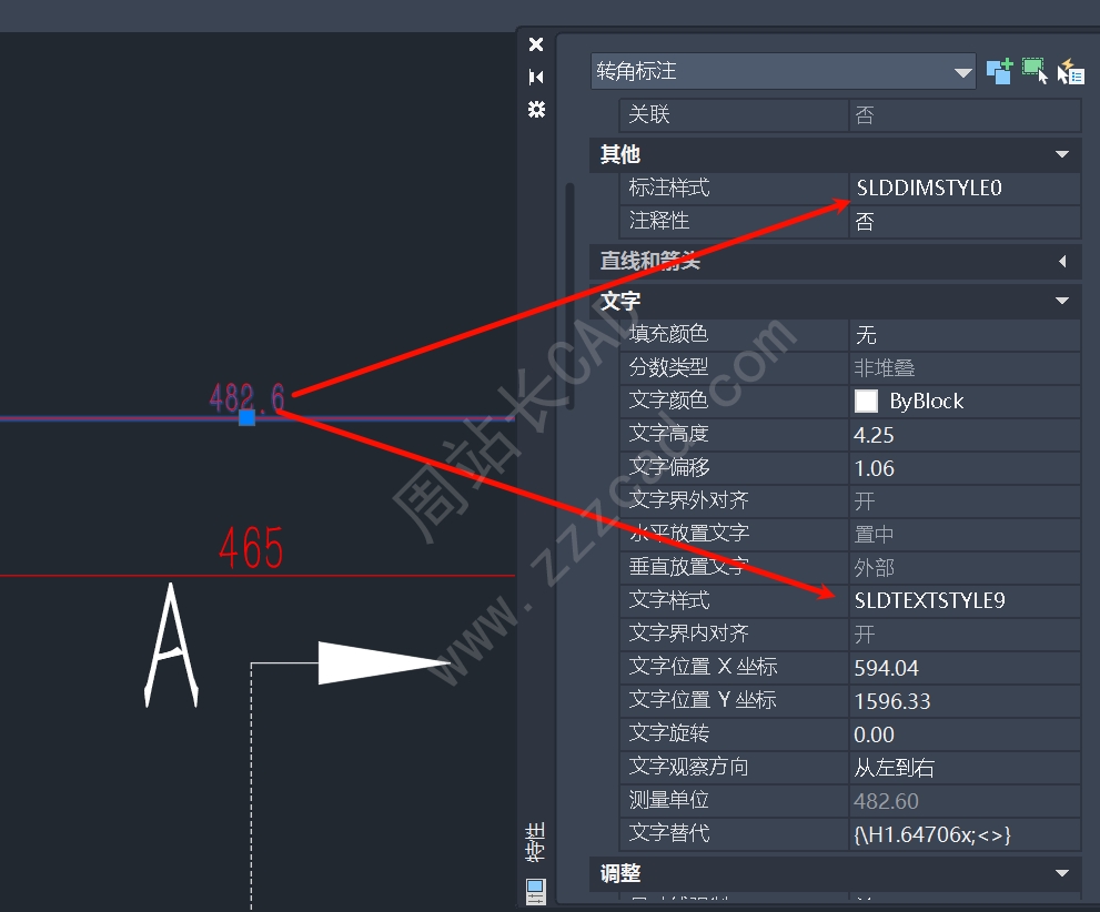 这边标注样式中的文字高度就会批量更改。