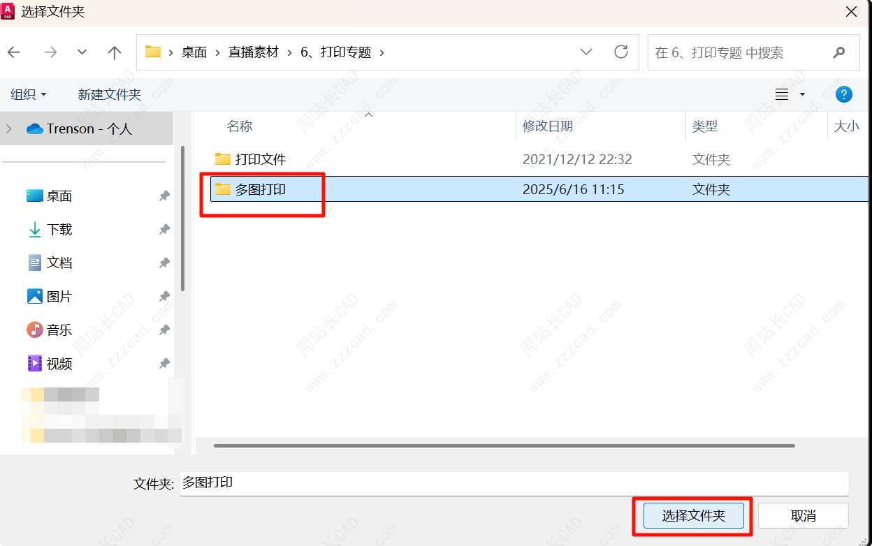 选择需要打印的文件夹。
