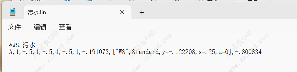 记事本打开我们创建的线型如下,如果下次还要使用此线型也可把此代码放入acadiso.lin文件中。