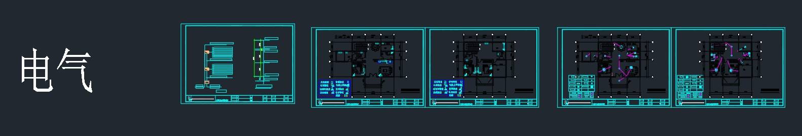 电 气 图:配电系统图、一层插座布置图、二层插座布置图、一层布灯布置图、一层布灯布置图。
